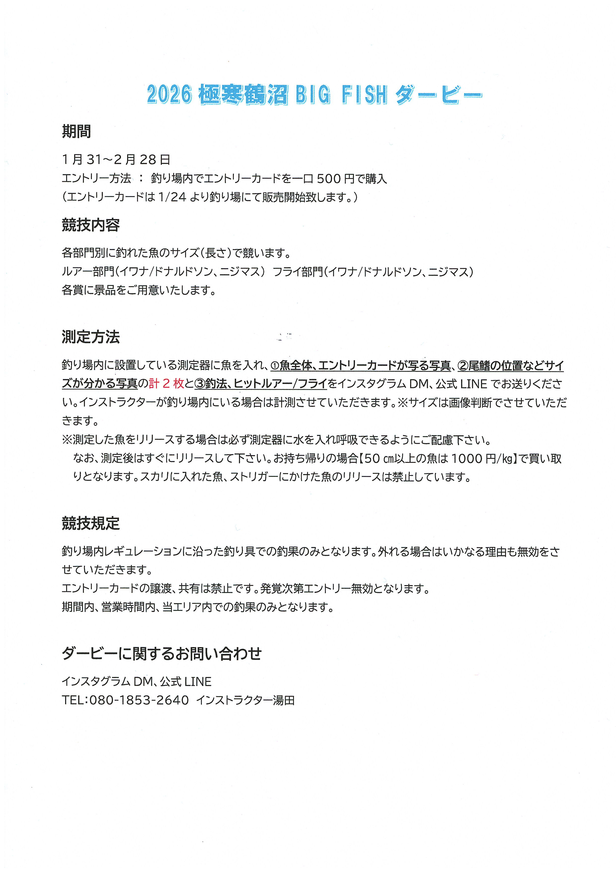 ルアー部門、フライ部門で釣れた魚のサイズ(長さ)を競います。